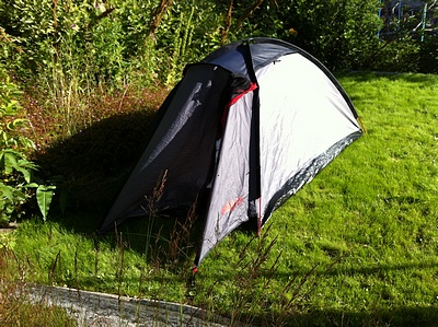 Dottern ville tälta i trädgården här hemma och sov själv första natten men i går ville hon ha sällskap så jag ställde upp... Hmmmm, kom väl relativt snabbt fram till att jag är liiite för bekväm för att ligga i tält utan ens ett riktigt liggunderlag så man kan väl säga att jag låg hårt och har sovit max två timmar totalt i natt;P Vist är det härligt med att ligga så i det fria och höra fågelsång men tyvärr väger det inte upp hårt underlag för någon som är lite för bekväm av sig men jag stannade kvar hela natten och reultatet är att jag ser ut som ett vrak i dag ;P Hi hi hi tur att jag ska vara hemma med barnen även i dag så vi har redan fotat upp nyheterna som kommer i dag så ni slipper se mina rödspränga ögon ;P