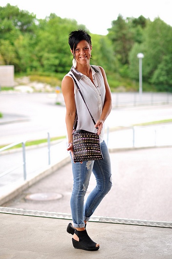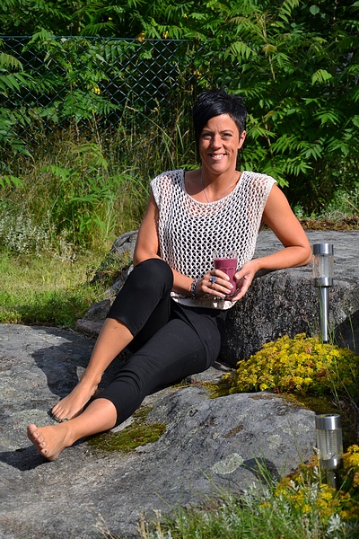 Solen skiner liiite så jag passade på att sitta ute en stund i trädgården innan jag kom hit till jobbet;) Vi håller tummarna för att regnet håller sig borta här för nu läggs "fogen" mellan stenplattorna som lagts på hela vår framsida i vår och då vill vi inte ha regn!!! I dag kommer bla den finfina collegekavajen, de slitna jeansleggingsen "funky punch" som är som funky foxy i modellen, nya bastoppar från Saint Tropez i härliga färger och lite annat smått och gott=)