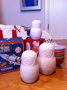 Jag och barnen har haft en helmysig dag i dag som vi startade på biblioteket och fyllde på lagret nu när vi är hemma igen;p Efter lunch åkte vi in till stan och såg "Ice Age 4" på bio och fikade på favvocafee´t "franska" ("le pain francais" som har världens godaste vaniljbriouche). På väg till bilen så gick vi förbi den här supergulliga leksaksaffären där jag shoppade loss både till mig och barnen... kolla tex de fina små ryska dockorna som är bakmått eller förvaringsburkar till skafferiet=) Butiken heter "lilla rummet" och ligger på Kungstorget i Göteborg mittemot Saluhallen=)