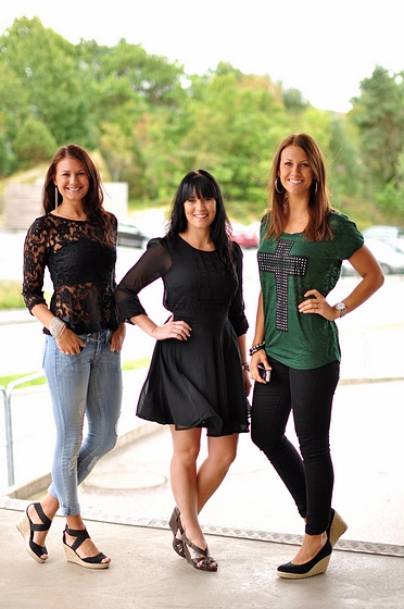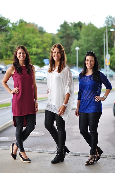 I dag kommer det upp fina härliga höstplagg både till fest och vardags.. * Joline har på sig coola "femme 3/4 lace"med "nette lace tube" under och sköna jeanseleggingsen "funky fiesta". * Fanny har på sig nya fina kläninngen "swansea" som även kommer i en cool lila nyans (kanonpris 299 kr). * Therese har på sig nya coola Saint tropez-toppen "meja" som kommer i dag och sköna "funky highwaist".