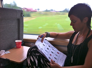 Ja nu sitter vi på tåget på väg till Stockholm och mässan. I morgon har jag möten inbokade hela dagen med start kl 10:00 så jag använder tiden här på tåget till att gå igenom höstens och vinterns kollektionsinköp.