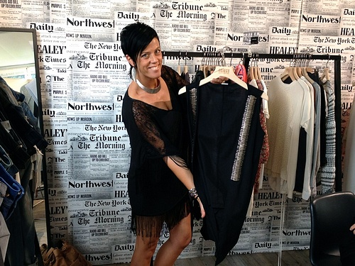 * Amanda har på sig klänningen "Calista" och nya stickade tröjan "Alba".