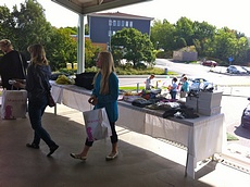 Nu har vi stängt igen vår lagerutförsäljning som vi för första gången haft på webshoppen och vi är helnöjda;) Tyvär mycket dålig uppdatering här på bloggen idag men jag hoppas ni har förståelse att jag har haft fullt upp sedan kl 8 i morse. Vi hade så mycket att göra att vi inte hann fota ordentligt heller så dessa två bilderna knäppte jag av bara lite i farten när allt hade lugnat sig och de flesta hade lämnat lokalen;P Kalle stod på utsidan och grillade korv och på insidan stod det 30 bord fyllda med kläder och det var sååååå mycket folk =) Nu är vi grymt trötta men superglada, ha en skön lördagkväll alla underbara Mandelkunder så ska jag ge er fler inlägg här i morgon.