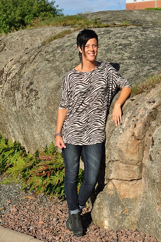 I dag har vi regn, regn och åter regn så det blir inget utomhusfix för vår del här. Sonen har precis varit på simskola och nu ska han strax iväg på kalas så då passar jag och dottern på att åka till biblioteket samtidigt. Jag inviger nya koftan "avantils" idag och kan verkligen rekommenderar den - superskön modell, kommer att användas flitigt i höst tror jag=) Jag har även på mig Saint Tropez-toppen "Tinnie J1548" och sköna "funky hw worn".