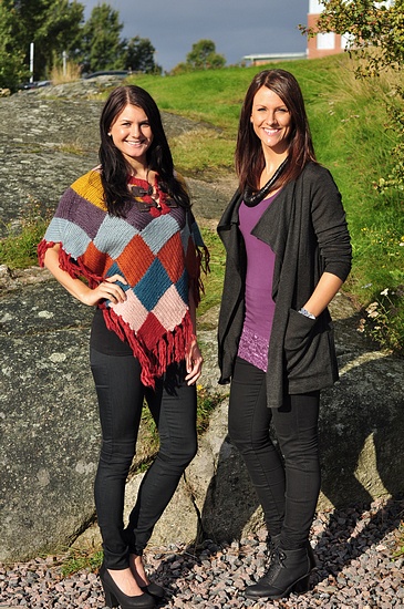 Fortfarande soligt väder här men som ni ser så är det en svart himmel bakom tjejerna så vi får väl se hur dagen blir här;P * Joline har på sig nya underbara ponchon som kommer i dag "clarie knit", "officiel"-linne under och sköna "geller"-byxorna. * Therese har på sig fina Vila-koftan "aska", "maxi my lace" som kommer i nya färger i dag och fina "funky highwaist".