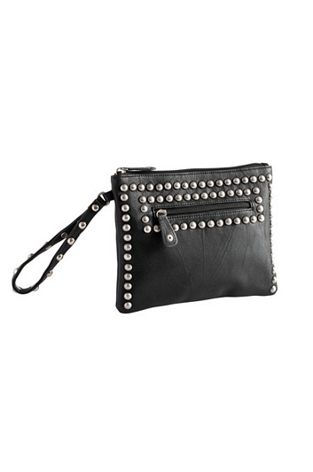 * Den större högst upp till vänster i skinn och kostar 799 kr. * Coola väskan brevid är i fakeskinn och kostar 499 kr. * Lilla partyclutchen med nitarna kostar 199 kr. * Väskan med alla fack är i fakeskinn och kostar 399 kr.