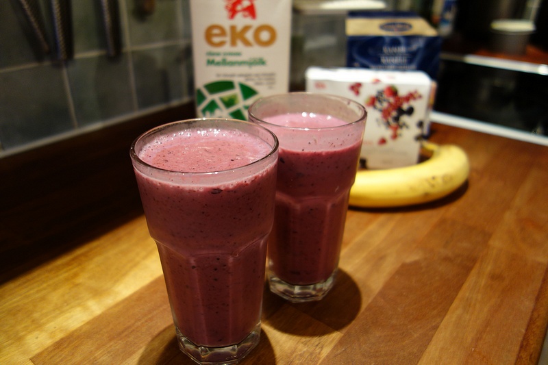Så här startar vi alla vardagsmorgnar här hemma, en smoothie till frukost som vi varierar med olika bär. I dag blev det en mix av vinbär, hallon, jordgubbar och björnbär, 1 banan, linfrön, kanel och mjölk. Hoppas ni också fått en bra start på dagen=)