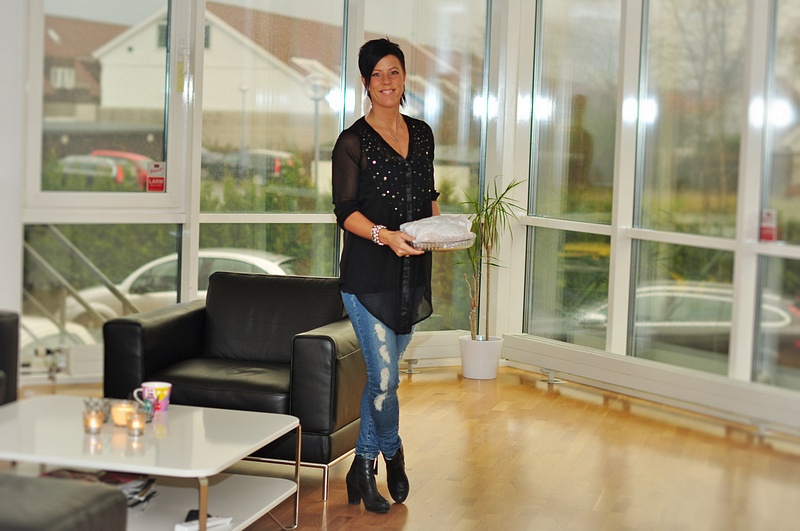 * Födelsedagstjejen har på sig underbara paljettkavajen "