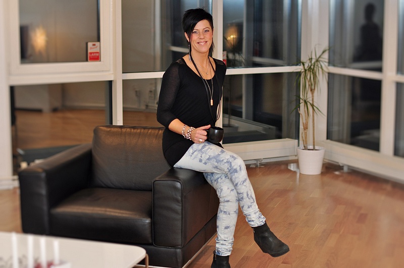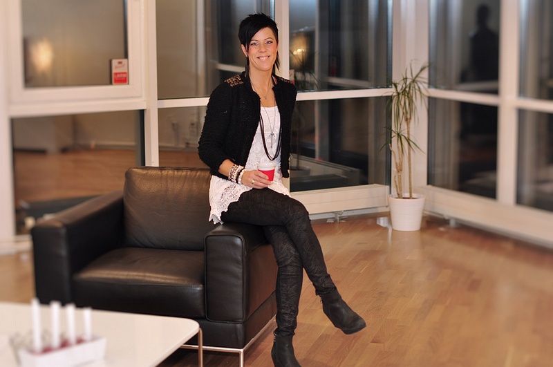 * Therese har på sig nya jeansskjortan "Rock It" som kommer i dag med coooola guldnitar, "
