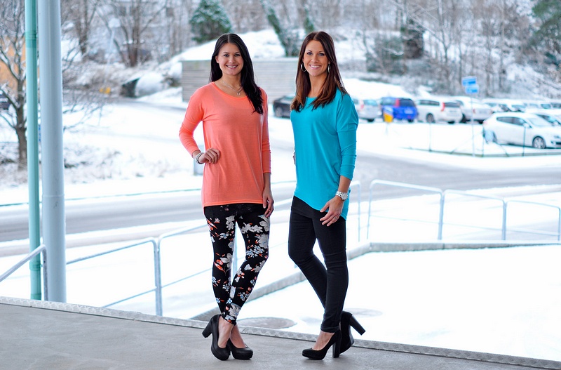 Ja nu har vi fått snö här igen men nu fokuserar vi på våren istället för nu har vi så många härliga toppar i nya underbara färger som kommer upp i dag=) * Joline har på sig suveräna "Irke"-toppen tillsammans med de nya "alma 2"-leggingsen som kommer upp i dag, under toppen har hon på sig sköna linnet "live love. Nya Edblad-halsbandet "eternity orbit" har hon som ligger fint i halsen också, det kommer både som kort och långt här i dag=) * Therese har också på sig underbara "irke"-toppen med "officiel"-linne under, "geller"-byxan och superfina "monaco lare"-örhänget.