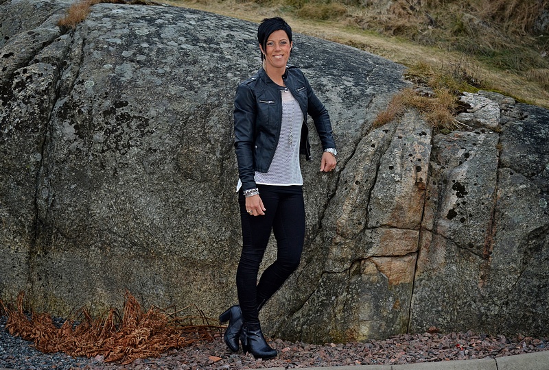 Jag har på mig "tessava"-toppen som kommer i dag, "officiel"-linnet, "nanna"-byxan, "houston"-jackan och halsbandet "herdis".