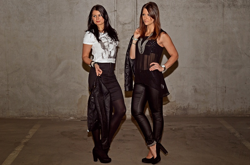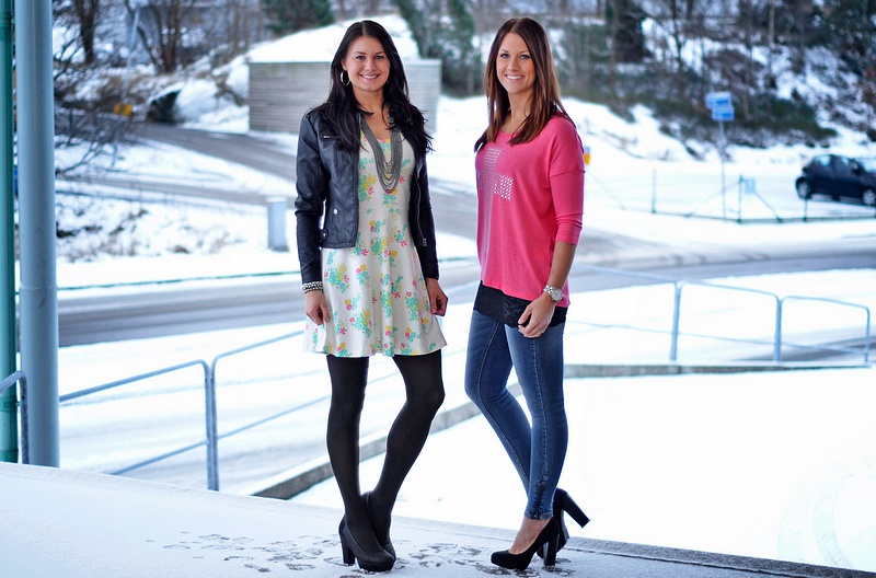 * Joline har på sig klassiska jackan "Houston" , supersöta tunikan "Tricia" i ett nytt blommigt print, och halsbandet "Galinu". * Therese har på "Cross/Wing Top 2", spetslinnet "Live Love Lace" och "Cleavo 7/8 Zip" som har blivit en personlig favorit bland oss här på Mandel.