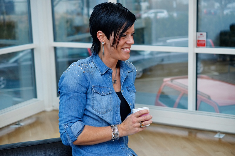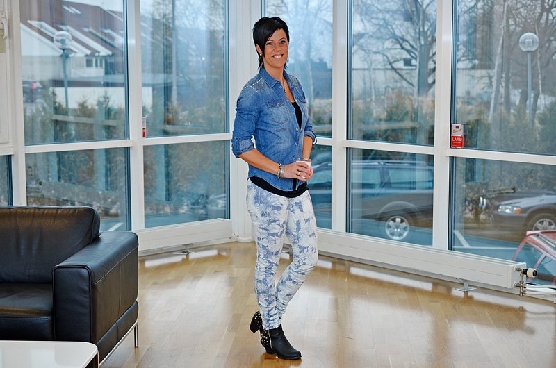 Jag har på mig suveräna "Cleavo Low 5 P Tie Dye", underbara "Joy"-linnet och jeansskjortan "Rock It Fitted Spikes". Örhängena "Panta" som jag har på mig här kommer upp i dag både som synes och i en mörkare metall, cool modell som man delvis hänger ner på baksidan vilket blir en kaxig effekt.