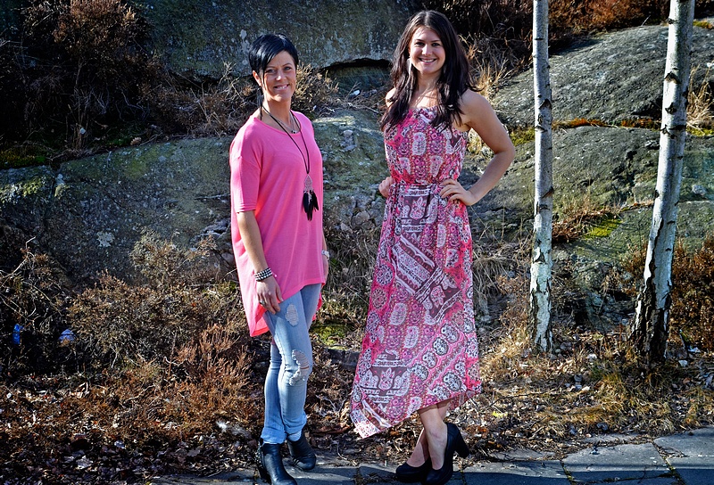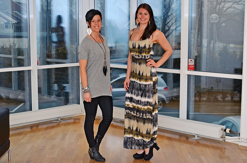 * Jag har på mig sköna "Nanna"-byxan och nya suveräna "Irke 2" som kommer i dag. Smyckena är bla "Alicia"-halsbandet, "Lee" (som äntligen kommit in igen), "Ave", "Courtney" mfl. * Joline har på sig nya underbara maxiklänningen "Kirsa" som kommer i dag i två fina färger.