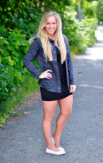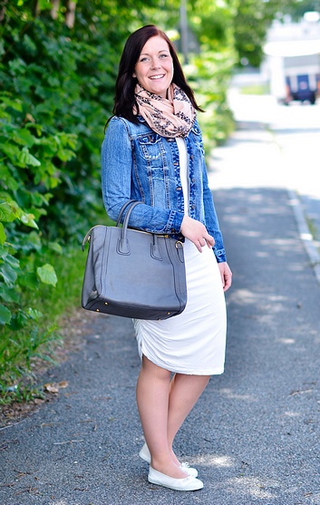 * Sofia har på sig "Charlot Below Knee Dress" som hon på första bilden har tillsammans med jeansvästen "Jada". Västen är en storfavorit bland oss på Mandel och rekommenderas verkligen! På andra bilden har hon matchat med supersnygga jeansjackan "Coon Denim Jacket" och väskan "Estrid".