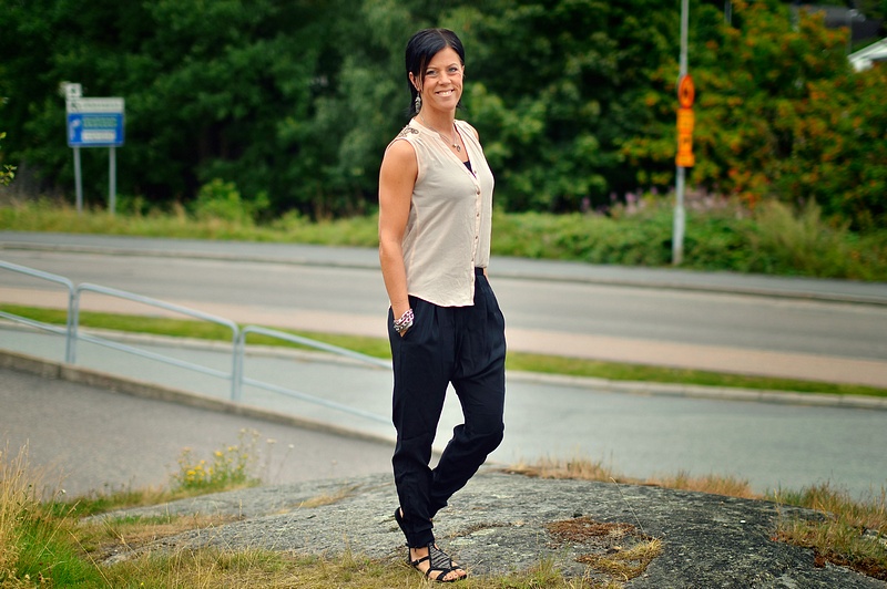 Jag har på mig sköna Vila-byxan "Nea", "Officiel"-linne och Vila-blusen "Vanja".