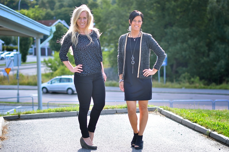 * Amanda har på sig fina toppen "Cass 1" från Soya som kommer i dag och sköna "Cleavo 5P". * Jag har på mig nya Vila-klänningen "Bea" som kommer i dag (perfekt modell som är den där "räddaren i nöden" i garderoben) och nya grå nynasen på kavajen/jackan "Valarie" som kommer nu.
