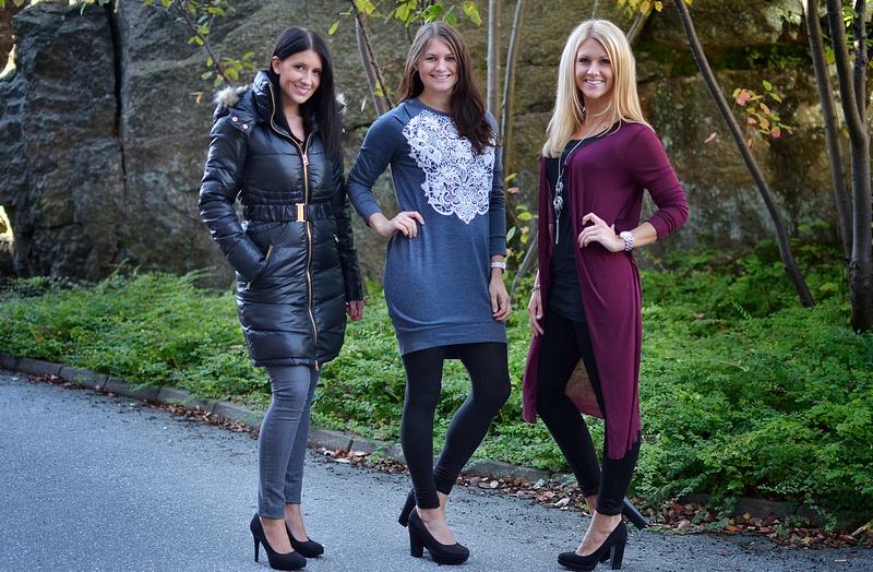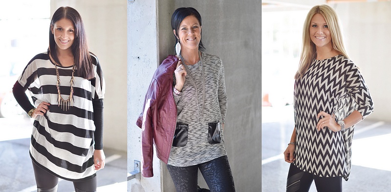 Ja nu har vi ju massa fina plagg inne på webshoppen så vi tänkte komma med tre inspirations-outfits till er här: * Jennifer har på sig coola leggingsen "Irena" och sköna oversizetröjan "Henri Stripe". Smyckena är fina "Ejaba"-halsbandet och armbandet "Ektil". * Jag har på mig coola mönstrade jeansleggingsen "Funky Ebon", tröjan "Suri" och fakeskinnjackan "Raben 10". Armbanden är "Lee" och "Courtney". Ringarna är "SOS" och "Square Ring Eternity". * Therese har på sig nya Object-leggingsen "Hildur" och oversizetröjan "Henri Graphic".