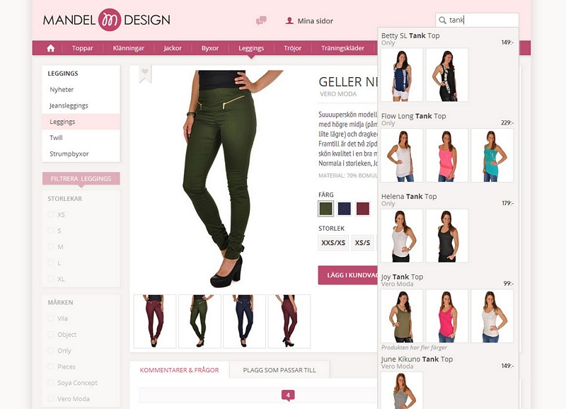 Här kommer nästa inlägg om den kommande sajten. En brist som finns på dagens sökning är att man måste börja på början av produktnamnet. Ibland vet man ju bara ett ord mitt i namnet. I den nya sökningen så kan man söka på något som finns någonstans i produktnamnet. Här har jag sökt på "tank" och får då upp produkter som har det i namnet. Bilder och pris visas också!