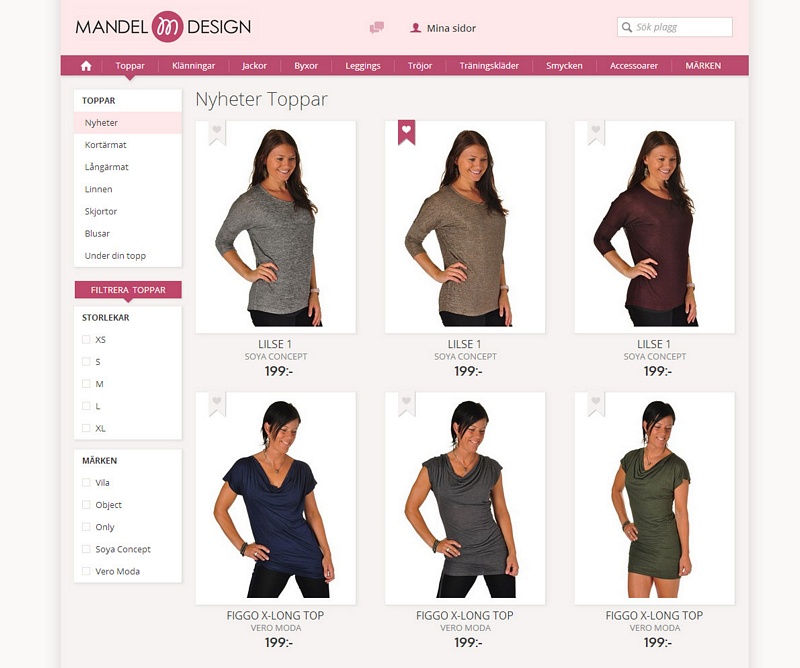 Jag lovade att guida er lite i den nya designen som kommer komma om ca två veckor. En sak som är jätteviktigt är ju kategorierna så det ska vara lätt att hitta. Som vårt upplägg är idag så har tyvärr några kategorier blivit alldeles för stora så nu kommer vi göra förbättringar där. Högst upp på sidan så har vi huvudkategorierna. När man klickar på någon av dem så dyker underkategorier till vänster. För varje huvudkategori finns "nyheter" som listar de senast inkomna varorna inom den huvudkategorin. Till vänster i menyn kan man filtrera på storlek och märke. Kategoribilderna blir lite större än tidigare. /Kalle