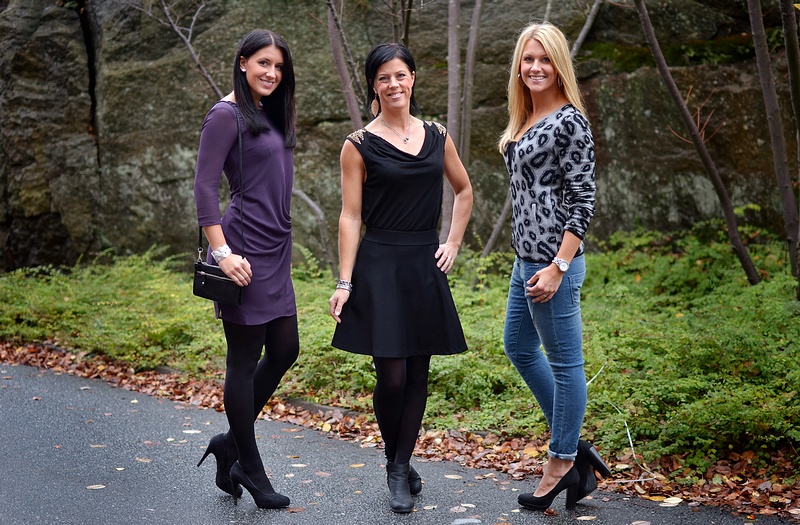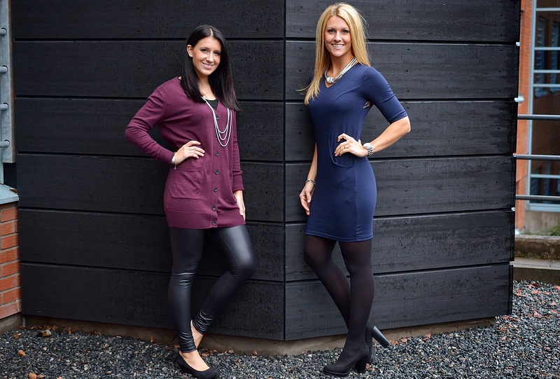 Ja mycket fint kommer det i dag, kolla tex de blanka "Shiny"-leggingsen som Jennifer har på sig som ÄNTLIGEN kommit in igen (storsäljaren från tidigare säsonger). * Jennifer har på sig omtyckta "Noir"-koftan och "Shiny"-leggingsen som bägge kommer upp i dag och fina kedjan "Adia". * Therese har på sig superfina klänningen "Regina" som kommer i dag, "New Nikoline" och halsbandet "Anis".