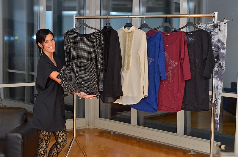 Ja i dag regnar och blåser det så mycket så jag höll på att blåsa iväg med kläd-ställningen när vi skulle fota ute (under tak) så det fick bli inomhusbild här i stället;P I dag kommer den fina småprickiga klänningen som jag tipsade er om förra veckan och den suuperfina Soya-skjortan med "fransarna" över ryggen som är så himla fin på!!! Nya färger på toppen "Highway" och nytt print på leggingsen "Gamma" kommer i dag också. Det kommer även en fin festtop med vacker vidd i ärmen och bred mudd nertill som är perfekt till säsongens alla fester (den kom inte med här på ställningen så ni får se den på tjejerna här sedan).