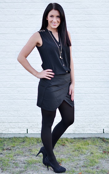 *Jennifer har på sig söta klänningen "Sarah Party", som gjorts om och passar höstens och vinterns alla festligheter. Till detta har hon fina halsbandet "Kastin" och strumpbyxorna "
