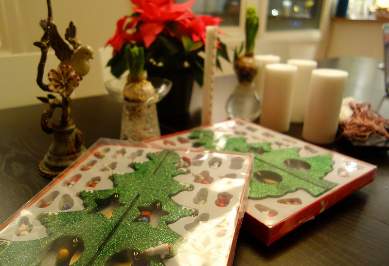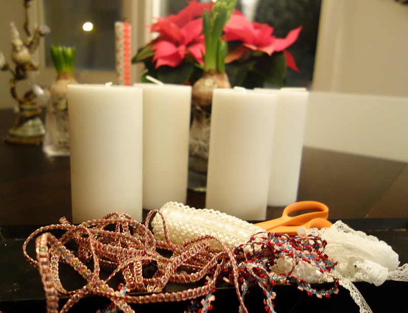 Ja vi var ju inte hemma till adventshelgen så jag ligger lite back här med rätta adventsstämningen med ljus och annat pyssel. Nu sitter jag här i kväll med julmusik på och tänker få till banden till adventsljusen och barnens granar som de får hänga en ny dekoration på varje dag fram till julafton. Stormen viner som tusan här utanför och piskar snöblasket mot rutorna men här inne brinner brasan så det är bara mysigt... än så länge iaf;P ...jag tror jag får värma på lite glögg till mig här också så jag kommer i den rätta stämnngen;)