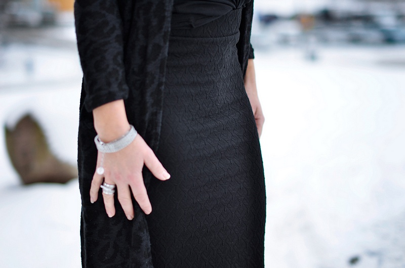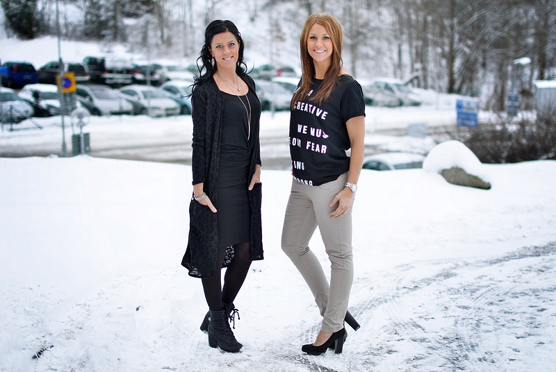 Ja det har kommit ännu mera snö inatt så det är fortfarande ett vackert vinterlandskap vi har här. * Jag har på mig nya färgen på omtyckta "Karola"-koftan som kommer i två nya färger idag och Coral-jeansen. * Therese har på sig superfina tunikan/klänningen"Fa Long Tinic som kommer i dag i färg som synes och i svart - kanoonpris 199 kr.