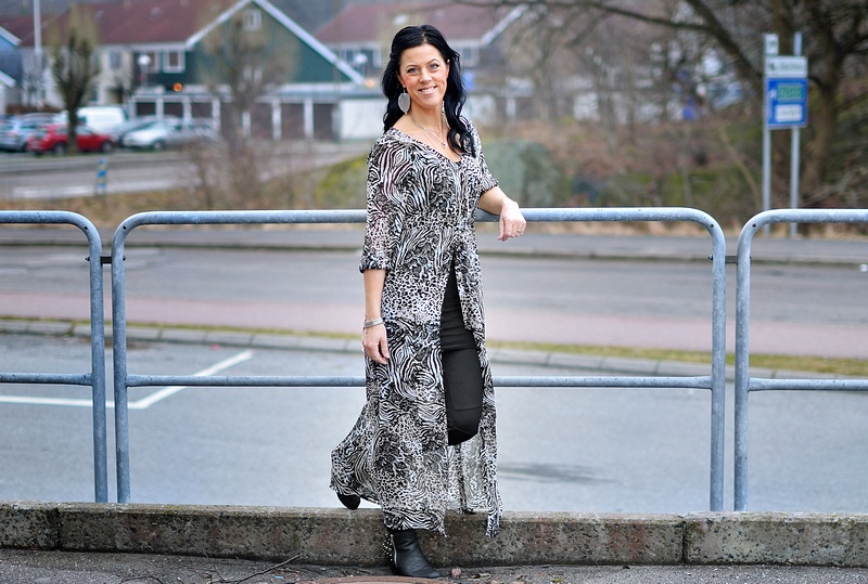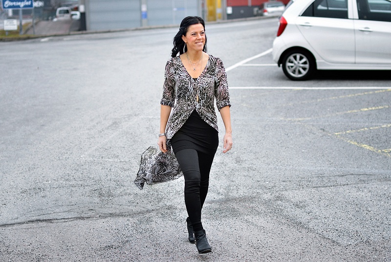Jag har på mig nya långskjortan "Savas" och leggingsen "Scuba" som bägge kommer i dag och långa "Officiel"-linnet.