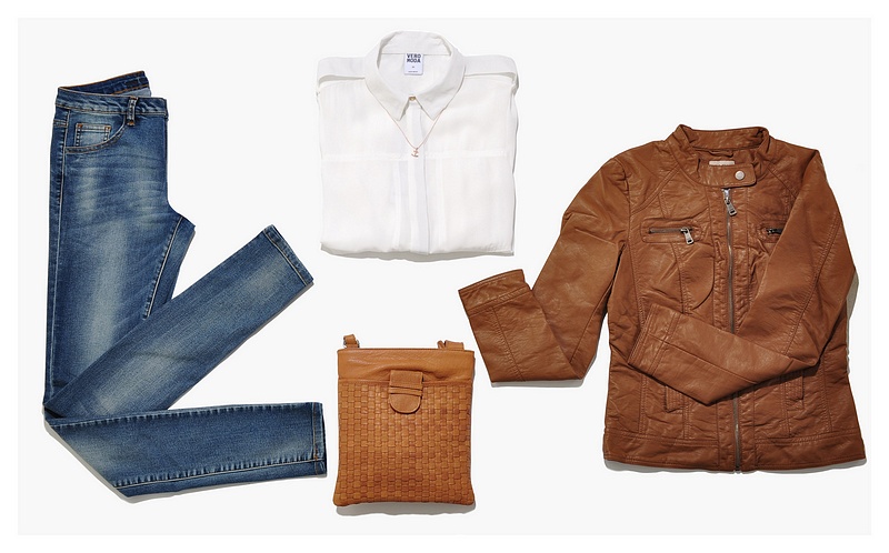 Jeansen är de sköna "Cleavo 5P-163" som passar snyggt med skjortan "Black Shirt". För att skapa en cool look kan man matcha med jackan "Bandit" och väskan "Braided Leather Bag", båda i färgen cognac. Smycket ni ser är söta halsbandet "Anchor Mini" från Edblad.
