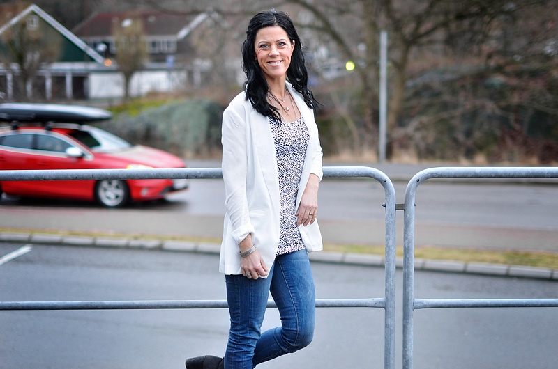 Jag har på mig suveräna "Olivia Denim"-jeansen, "Live Love Long Printed" och trend-kavajen som kommer i dag.