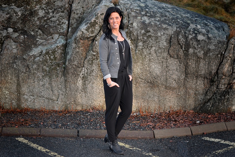 Jag har på mig nya byxan "Gossip" som alltså kommer i dag, "Joy"-linnet, "Anette"-jackan, smyckena är bla "Älskad Berlock Strass", "Trio"-ring, "Lee"-armband, "Tube"-armband.