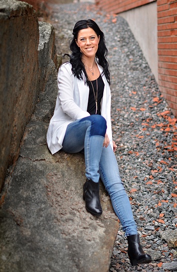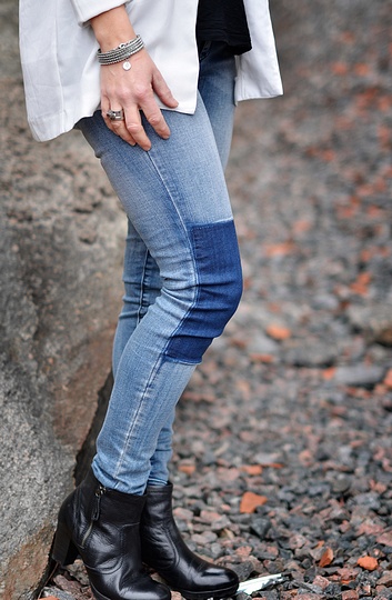 Jag har på mig nya jeansen "Funky Sindy" som kommer i dag, "Joy"-linnet och coola kavajen "Tarina".