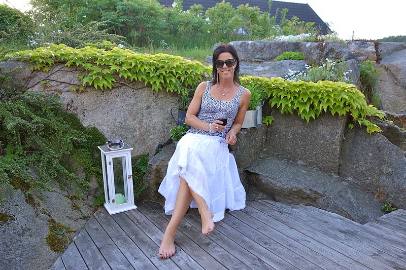 Vilken härlig sommarkväll vi har här nu, har haft en riktig sportdag idag där vi tillbringade halva dagen i judohall då sonen tävlade och andra halvan av dagen på golfbanan. Nu dags för ett glas rött (eller två ;P). Har på mig sköna ajlajk-kjolen "a-102" och linnet "Live Love Long Print" i leoprint.