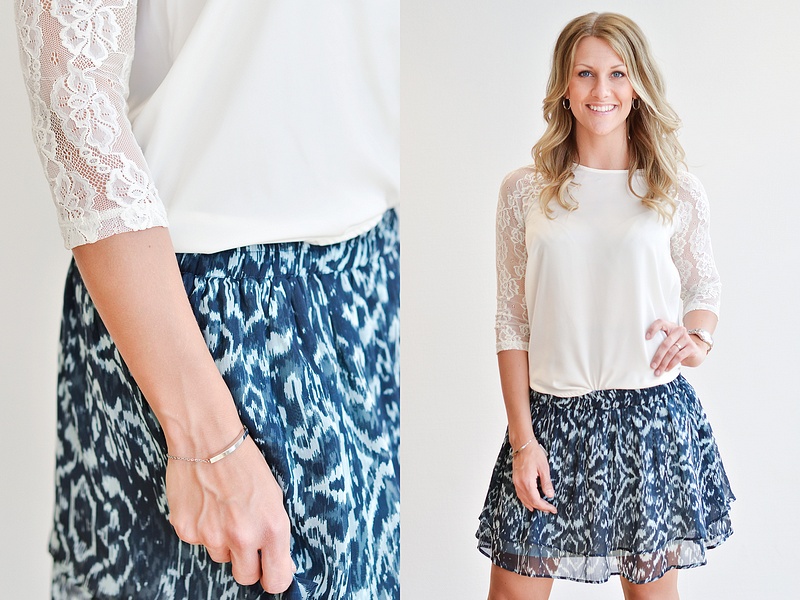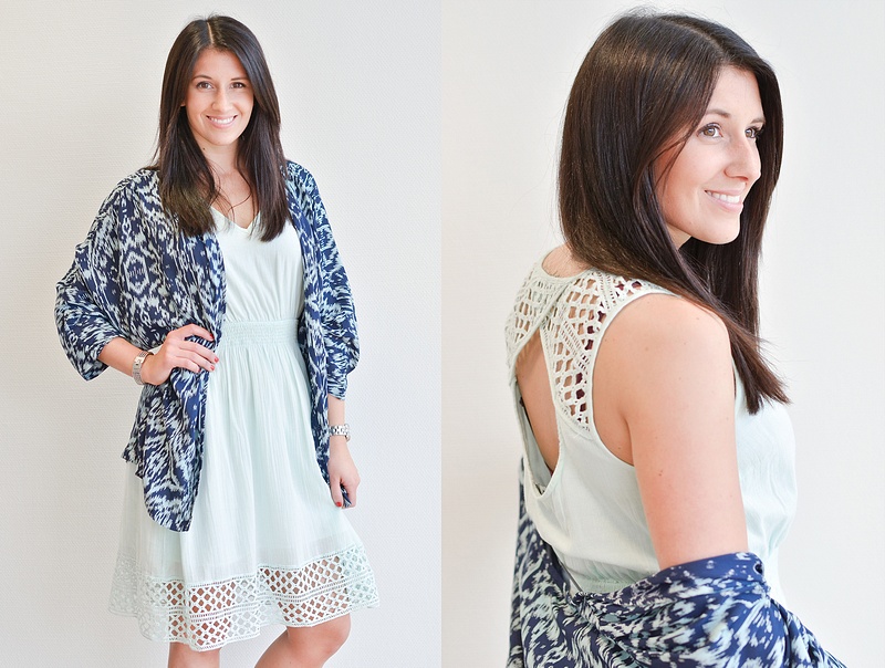 Ja nu i sommar ser vi mer och mer pastelltoner och då mycket i den här fina mint-nyansen som ni ser på Jennifers klänning här. Coola tribe/aztec-print är fortsatt trendigt och gärna som här i färg. *Jennifer har på sig fina Vila-klänningen "Rays dress" och fina Vila-kimonon "Tribe Kimono" som fångar upp klänningens mintgröna nyans. * Therese har på sig fina kjolen som också den är i "Tribe"-serien från Vila, toppen är fantastiskt fina "Walan" som vi verkligen rekommenderar. Smyckena är bla "Monaco" och "Tube".