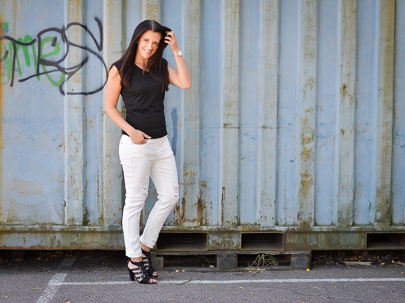 Jag har på sig söta toppen med rosett framtill, "Lux Party". Kommer även i korall och cerise. Jeansen "