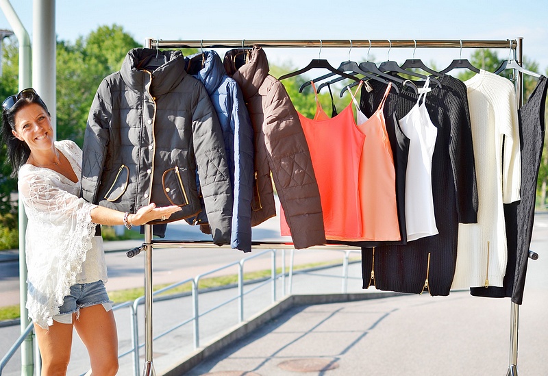 Ja att få till en normal dagens-bild på nyheterna på ställningen var helt omöjligt i dag för vinden vann över mig här;P Jag hoppas ändå att ni ser här att det är flera helt galet fina modeller som kommer upp nu kl 11:00, kolla tex på fina chiffongtoppen med spets över hela ryggen - missa den inte!!! Nu kommer även en trendig tunika med "marmor"-print (ett print som det talats mycket om) så den är ju perfekt nu och hela hösten, perfekt att kombinera med nya trendiga ljusgrå tvätten på Olivia-jeansen (jag har redan norpat dom själv). Nu kommer även omtyckta Tinny-modellen som top i fina marina ränder och en härlig blommig ärmlös chiffongblus också=) Jag har på mig suveräna shortsen "Dicta" och fina toppen "Minna".