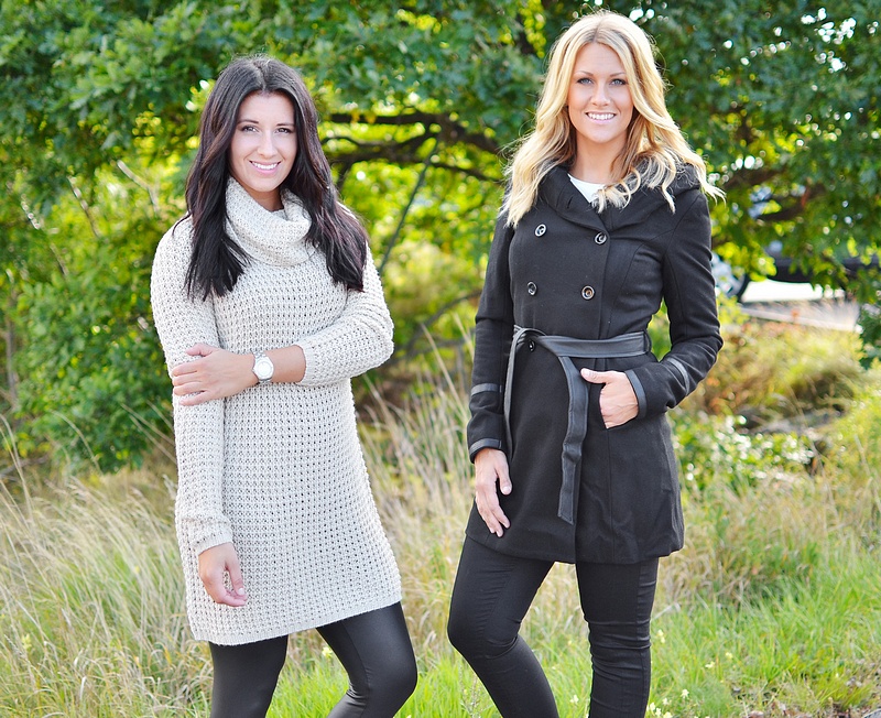 Ja härliga höstplagg kommer det upp här i dag som jag hoppas ni kommer gilla. * Jennifer har på sig fantastiskt gosiga långpolon "Tullalu" som kommer i flera fina färger, leggingsen är suveräna "Shiny" som är perfekta till här. * Therese har på sig nya fina "Lisa Coat"-kappan med fina pu-detaljer och snygga kragen som ger det där lilla extra. Byxan är suveräna "Olivia".