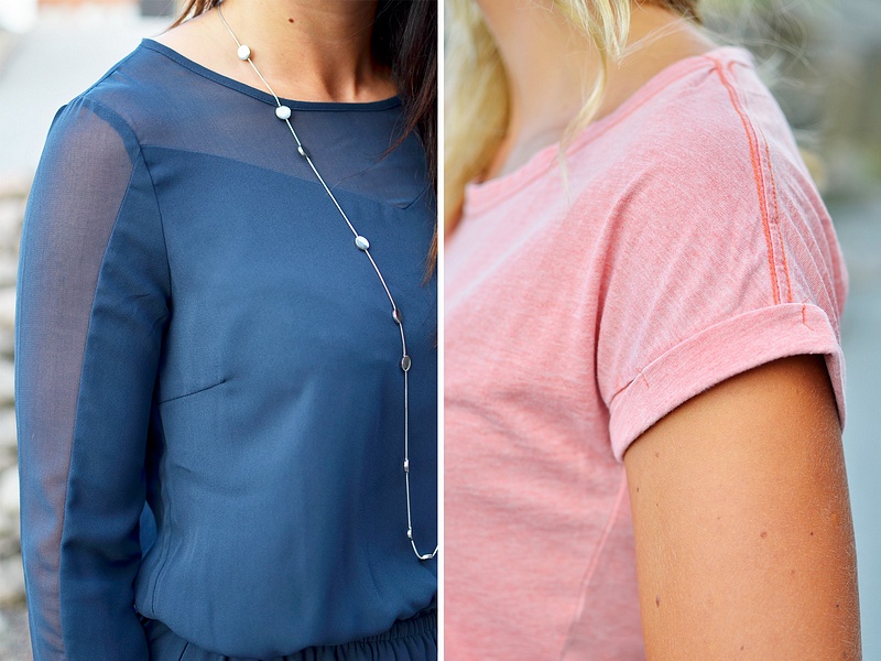 *Den superfina klänningen som Jennifer har på sig, med snygga chiffong-detaljer på ärmar och urringning. "Actor" heter den och kommer även i svart. *Jag (Therese) har på mig coola tishan "Truly", med snyggt uppvik på ärmarna (som jag personligen ääälskar!). Jeansen är snygga "Kim Loose".