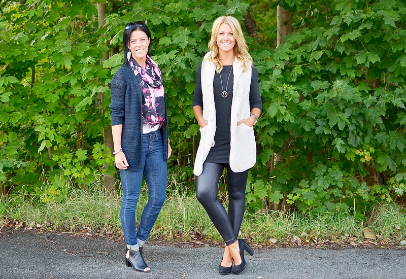 * Jag har på mig sköna baskoftan "Geena" som kommer i flera fina färger och fina sjalen som kommer i två fina rosa nyanser. * Therese har på sig omtyckta fakepälsvästen och fina klänningen/tunikan som är med snygg öppning i ryggen, bägge plaggen kommer i dag. Leggingsen är grymma "Shiny" som jag hoppas ni är snabba på att köpa nu för ni kommer väl ihåg hur snabbt dessa brukar ta slut när höstsäsongen väl är här.
