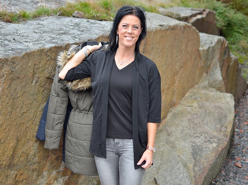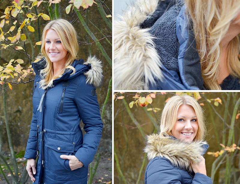 * Therese har på sig fantastiska parkasen som är superskön då tex är fleecefodrade fickor vilket är underbart när kylan är här. stor skön luva där både luvan och pälskant är avtagbar så man kan kombinera den lite olika och även sätta pälskanten direkt på utan luva om man vill det. Tröjan är från Object med fin spets framtill.