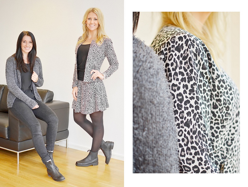 *Jennifer har på sig den fantastiska lurvtröjan "Vihanna", som även kommer i cremefärgat. Jeansen är sköna "Strong Skinny". *Jag (Therese) har på mig suuuuperfina kimonon "Visafe", som ni känner igen från bloggen och även från förstasidan. Det är många som väntat, och nu äntligen är den här! Ni som inte har hunnit införskaffa säsongens stora trend kimonon än, gör det idag! Byxorna jag har på mig är sköna "Just Easy".