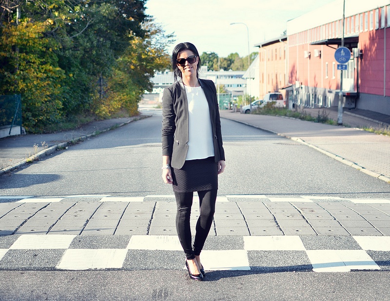 Jag gillar verkligen svartvita outfits så här får ni ett tips med grymma kavajen "Isolde" till. * Kjolen är coola "Quilty", suveräna toppen är "Onlyoyo" med spetsärm som sitter fint på, funkar både till kjol och jeans. Leggingsen är nya Vila-modellen "Vimackenzie".