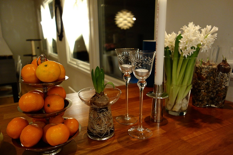 Ja nu börjar det arta sig här hemma, alla blommor är klara och likaså årets avdentsstake, stjärnorna sitter i fönstren och hyacintdoften fyller huset. Har precis tänt brasan så nu ska jag börja med frukosten här, dags för premiär av vörtbrödet i dag=)
