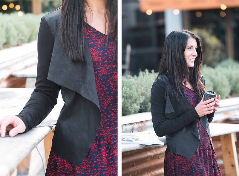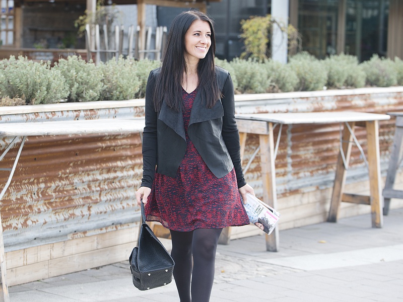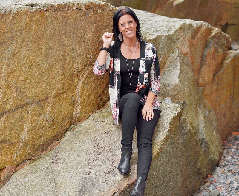 Här kommer lite mer inspiration på en snygg höstoutfit! Jennifer har på sig snygga klänningen/tunikan med härliga färger "Vindia", tillsammans med coola kavajen "Sound" i fin skinnimitation runt om och med ärmar i trikå. Väskan heter "Sufia" med smarta fack på utsidan.