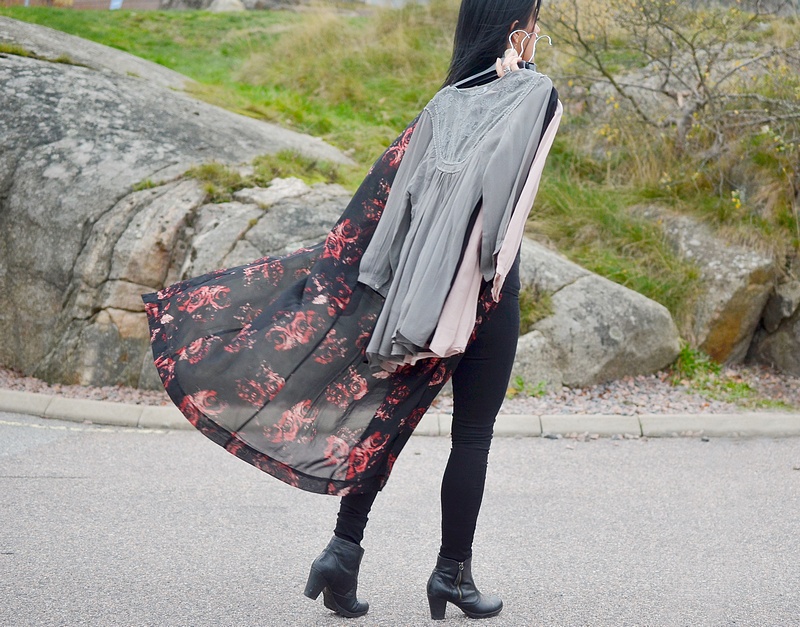 Jag har på mig suveräna långa kimonon "Rae" som jag verkligen rekommenderar, "Officiel"-linne och favvo-byxan "Super Fix" som är så galet sköna på, de siter så snyggt tajt på benen även nertill som ni ser på nedersta fototo här.