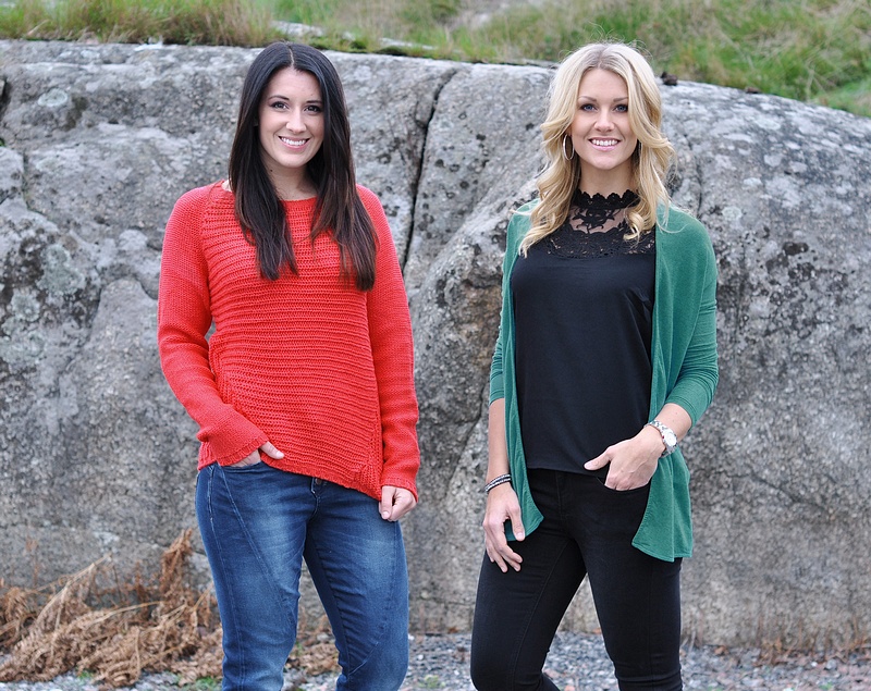 Jennifer har på sig nya fina stickade tröjan "New Tullalu" (hon har den röda på sig här) och Therese har på sig vårfärgerna på storsäljaren "Lululove" som också kommer i dag.