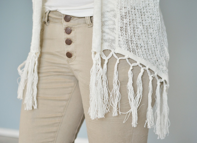Byxan är coola "Objiris" från Object tillsammans med snygga jeansskjortan "Jdywyre", ärmlösa spetstoppen "Onlaugusta" och sköna lurviga koftan "Perfect".