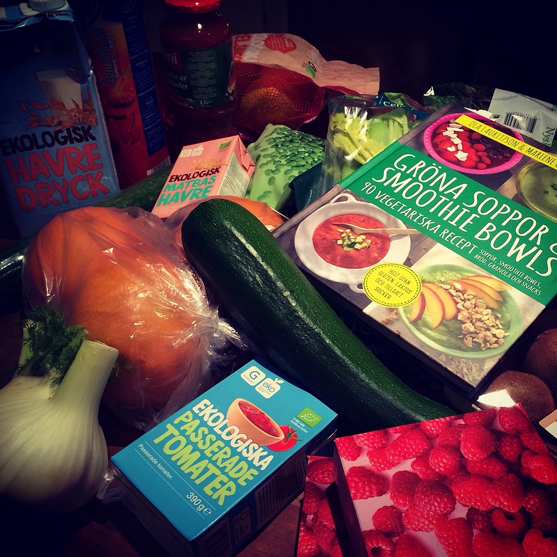 Ja januari är ju ofta en månad när man vill äta lite sundare och vi brukar försöka göra ett litet ryck med det vi också. Nu tänkte jag börja göra lite mer vegetariska soppor och mer matiga smoothies och gröna juicer så jag har precis köpt den här boken som verkar ha en hel del härliga recept. I går gjorde vi en thaisopppa med färsk ingefära, purjo, paprika, röd curry m.m som var riktigt god. Vardagar tar vi alltid smoothie och tänker såklart fortsätta med det även den här månaden och det är ju alltid bra med lite mer variation så nu har jag köpt hem både kokosdryck, soyadryck och havredryck som jag ska ta istället för mjölken som jag vanligtvis har i frukostsmoothiesen tillsammans med alla bär och frukter.